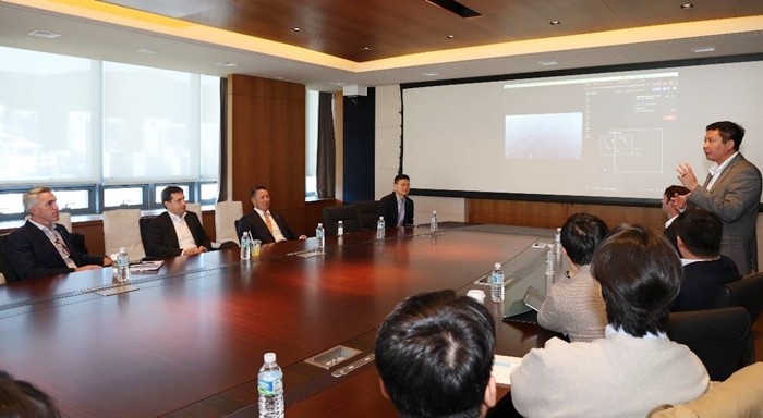 지난 28일 폴 르윈(Paul Lwin) 해벅AI CEO 및 연구진들은 한화오션 거제사업장에 방문해 한화의 함정건조 및 해양시스템 역량을 확인했다.