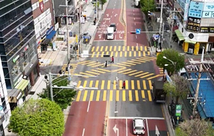 교차로에서 모든 방향으로 건널 수 있는 ‘대각선횡단보도’ 설치 이후 교통사고 건수가 이전보다 18.4%(377건→ 308건) 감소했다.