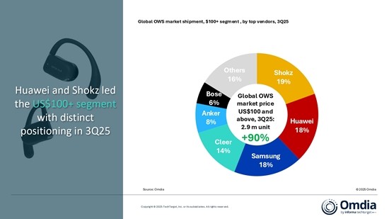 신시아 첸(Cynthia Chen) 옴디아 리서치 매니저는 “OWS가 분기 출하량 1000만 대 기준점을 넘어선 것은 단순한 이정표 이상의 의미가 있다”며 “이는 OWS가 하나의 정식 카테고리로서 소비자가 히어러블(hearable) 기기를 생각하는 방식을 새롭게 형성하고 있음을 입증한다”고 말했다.