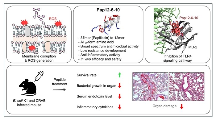 세부적으로 ‘Pap12-6-10’은 세균의 독성 물질인 지질다당체(LPS)에 결합해 세포막을 손상시키고, 산화 스트레스를 유도해 세균을 제거한다.