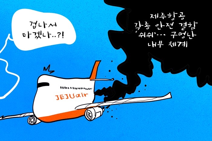 | ▲ 데일리-경제만평=제주항공, 각종 안전 결함 문제 '쉬쉬'…구멍난 내부 체계 @데일리매거진 |