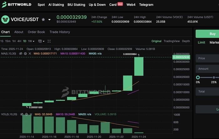 이번에 상장된 VOICE 토큰은 상장 직후 강력한 상승 흐름을 보이며 시장의 관심을 집중시켰다.