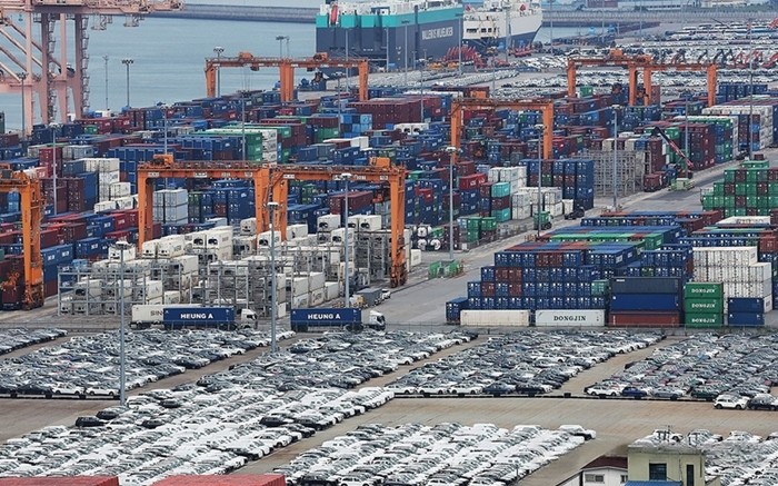 | ▲ 사진=경기도 평택항에 쌓여 있는 컨테이너와 세워져 있는 자동차 [제공/연합뉴스] |