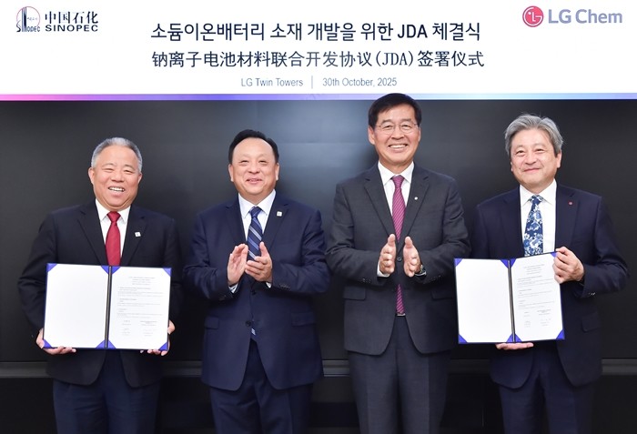 LG화학은 지난 30일 중국 시노펙과 소듐이온전지(SIB) 핵심 소재 개발을 위한 공동개발 협약을 체결했다고 4일 밝혔다.