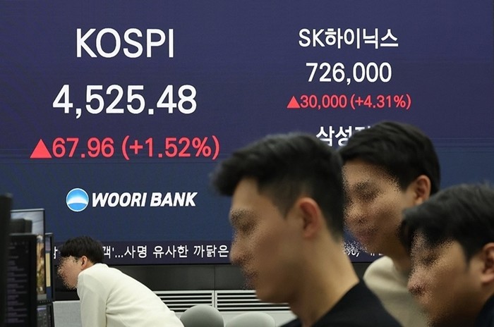지난 2일 사상 처음 4,300선을 넘은 코스피는 전날 4,400선을 넘은 지 하루 만에 4,500선 벽마저 깼다.