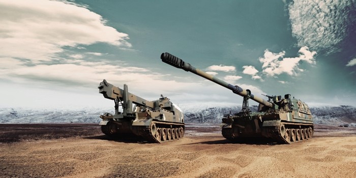 | ▲ 사진=한화에어로스페이스의 K9 자주포(오른쪽)와 K10 탄약운반차 [제공/한화에어로스페이스] |