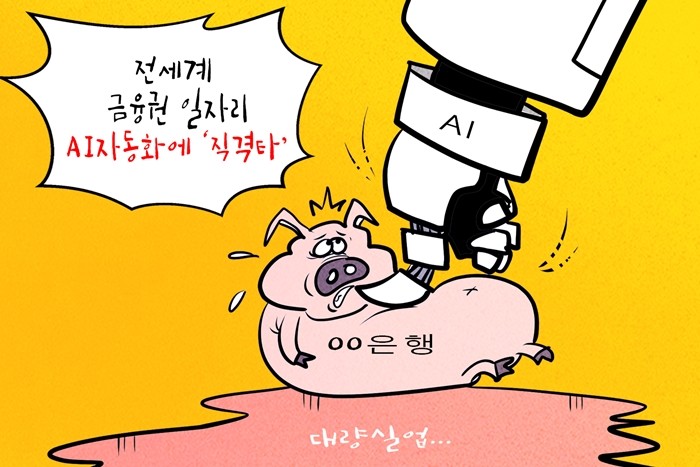 | ▲ 데일리-경제만평=AI로 인해 2030년까지 유럽 은행권 일자리 20만개 위협 @데일리매거진 |