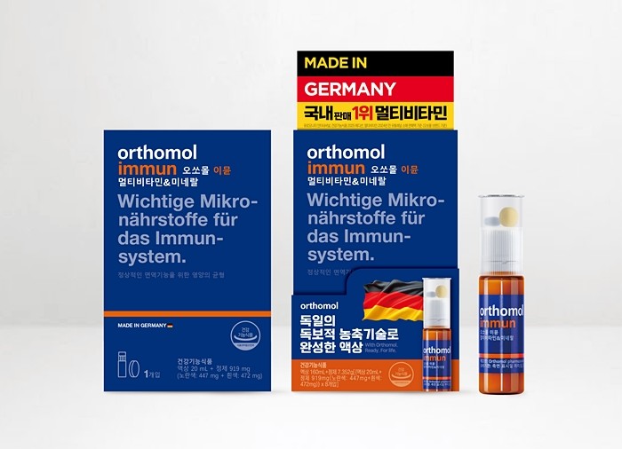 동아제약은 독일 프리미엄 이중 제형 멀티 비타민 브랜드 ‘오쏘몰(Orthomol)’이 CU와 GS25편의점에서 ‘오쏘몰 이뮨 1일분’을 출시한다고 26일 밝혔다.