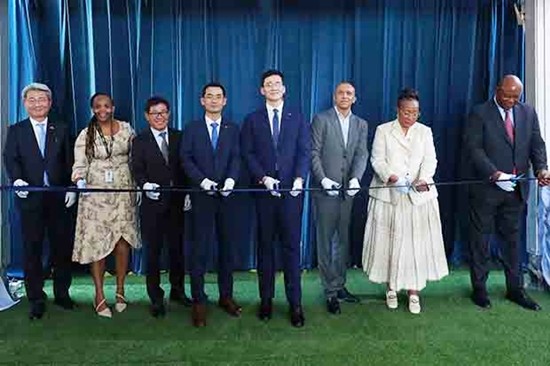 ▲ 사진=준공식에 참석한 주요 관계자들이 기념 사진 촬영, (좌부터 주남아공 양동한 한국 대사, 에스콤(Eskom) 연구개발실장, 엠텍 신영수 법인장, 대한전선 김준석 부사장, 호반그룹 김대헌 기획총괄사장, 남아공 통상산업경쟁부(DTIC) 에너지부문장, CIH 회장, CIH 대표이사 [제공/대한전선] |
