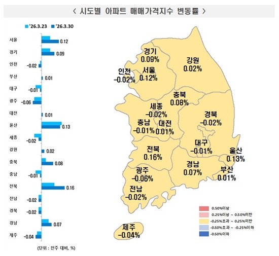 | ▲ 시도별 아파트 매매가격지수 변동률 [제공/한국부동산원 ] |