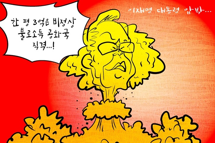 | ▲ 데일리-경제만평=李대통령 "서울의 경우 아파트 한 평에 3억, 말이 되나…뭔가 잘못된 것" @데일리매거진 |