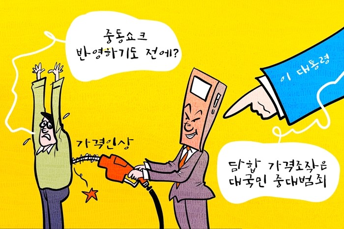 | ▲ 데일리-경제만평=정부, 담합·가격조작은 중대범죄…전국 알뜰주유소에 대한 관리 강화 나서 @데일리매거진 |
