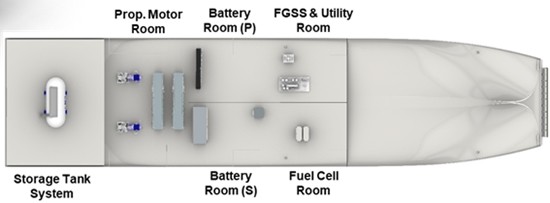 | ▲ 기존 연안선박 개조(Retrofit)를 통한 수소연료전지 시스템 배치 예시 [제공/선박해양플랜트연구소] |