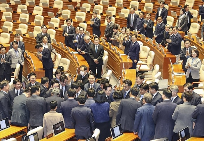 | ▲ 사진=이재명 대통령이 4일 서울 여의도 국회 본회의장에서 내년도 정부 예산안에 대한 시정연설을 마친 뒤 의원들과 악수 [제공/연합뉴스] |
