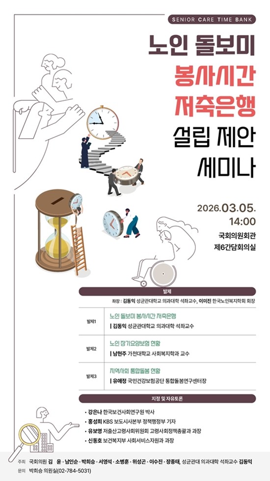 ▲ ‘노인 돌보미 봉사시간 저축은행 설립 제안 세미나' 포스터 [제공/박희승 의원실]