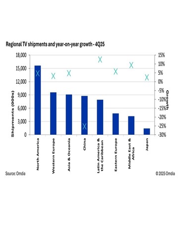 지난해 4분기 글로벌 TV 출하량 6150만 대…전년 동기 대비 보합세 유지