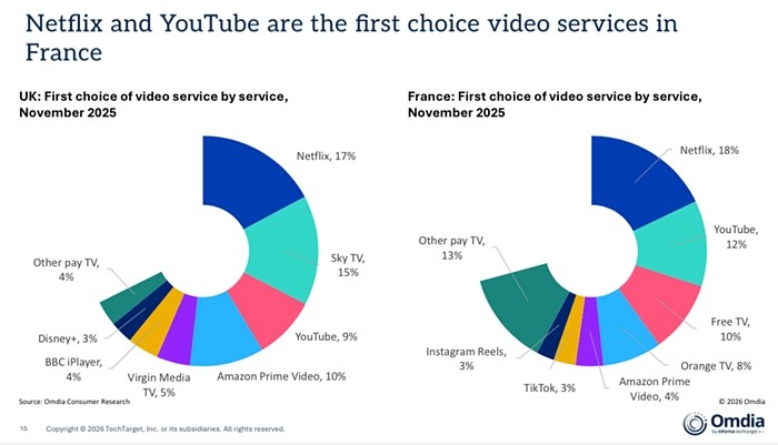 옴디아(Omdia)에 따르면 2027년까지 넷플릭스(Netflix)의 전 세계 월간 활성 사용자 수는 10억 명을 넘어설 것으로 예상되며, 유튜브(YouTube)는 전 세계적으로 30억 명에 육박할 것으로 전망된다.