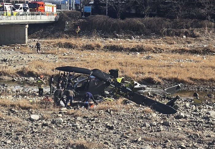 육군에 따르면 이날 오전 9시 45분께 경기도 가평군 조종면 현리 주둔지에서 이륙해 비상절차훈련 중이던 15항공단 예하 대대 소속 육군 헬기(AH-1S·코브라)가 원인 미상의 사유로 오전 11시 4분께 하천에 추락했다.