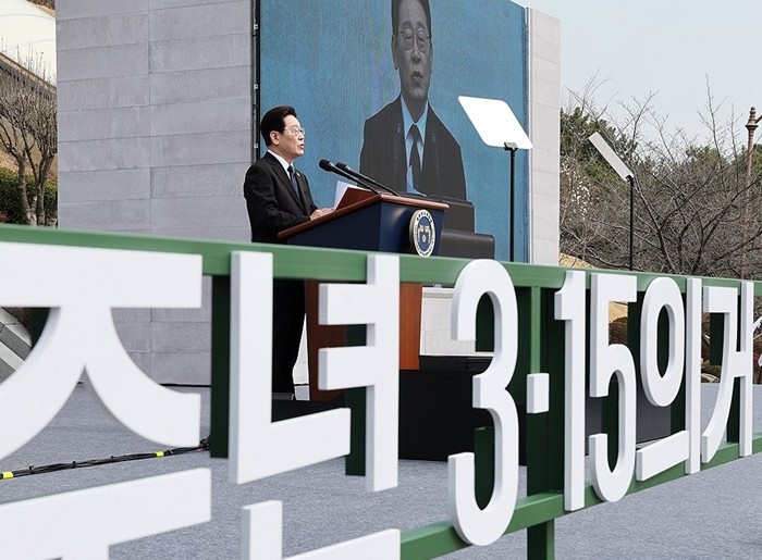 | ▲ 사진=이재명 대통령이 15일 경남 창원시 마산회원구 국립 3·15 민주 묘지에서 열린 제66주년 3·15의거 기념식에서 기념사 [제공/연합뉴스] |