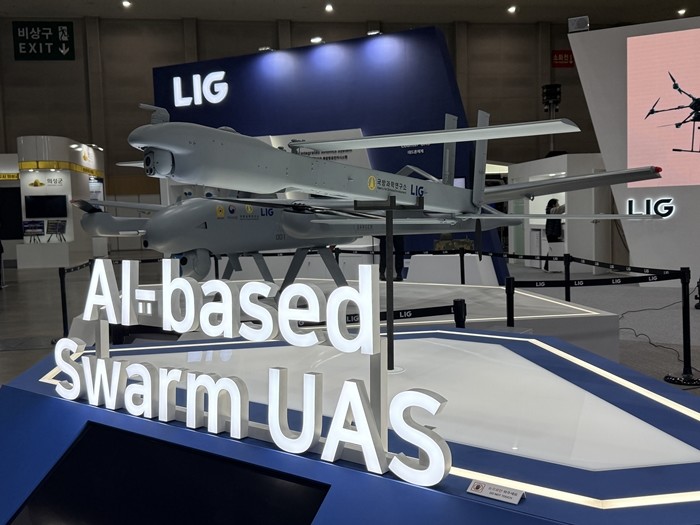 이번 전시회에서 LIG넥스원은 인공지능(AI) 기반 군집 무인기를 처음으로 공개하며 미래 전투체계의 비전을 제시한다.