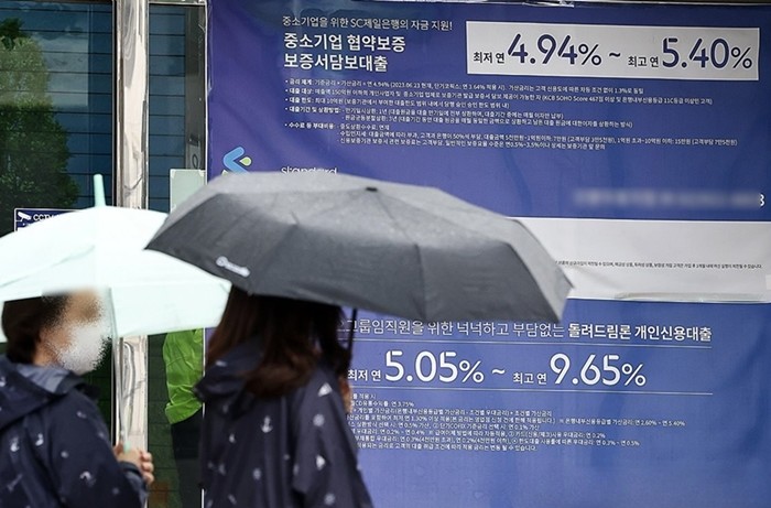 | ▲ 사진=서울 시내의 한 은행 앞에 주택담보대출 현수막 [제공/연합뉴스] |