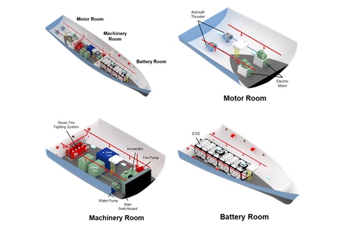 | ▲ 기존 선박을 전기추진선박으로 개조하기 위한 추진시스템 배치 예시 [제공/선박해양플랜트연구소] |